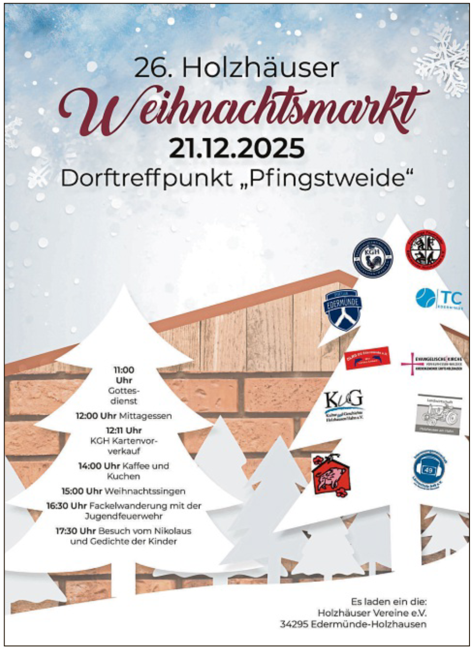 Am Sonntag, den 21.12.25, startet der 26. Holzhäuser Weihnachtsmarkt um