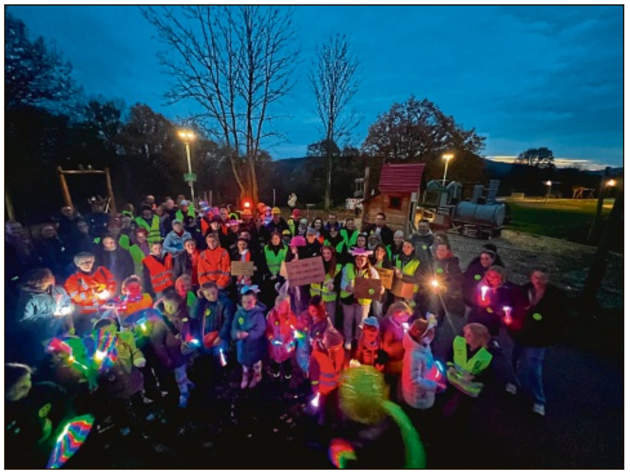 platz in Haldorf, um sich mit Fackeln und Leuchtstäben auf eine kleine Wan-