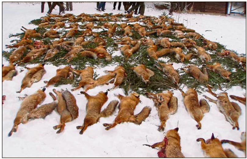 führt. Füchse werden verteufelt und mit allen Mitteln bekämpft (Baujagd,