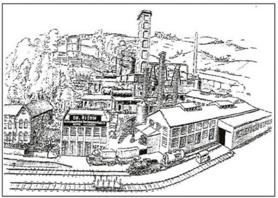 Kupferstich "Das Bitumenwerk Dr. Riehm um 1930"