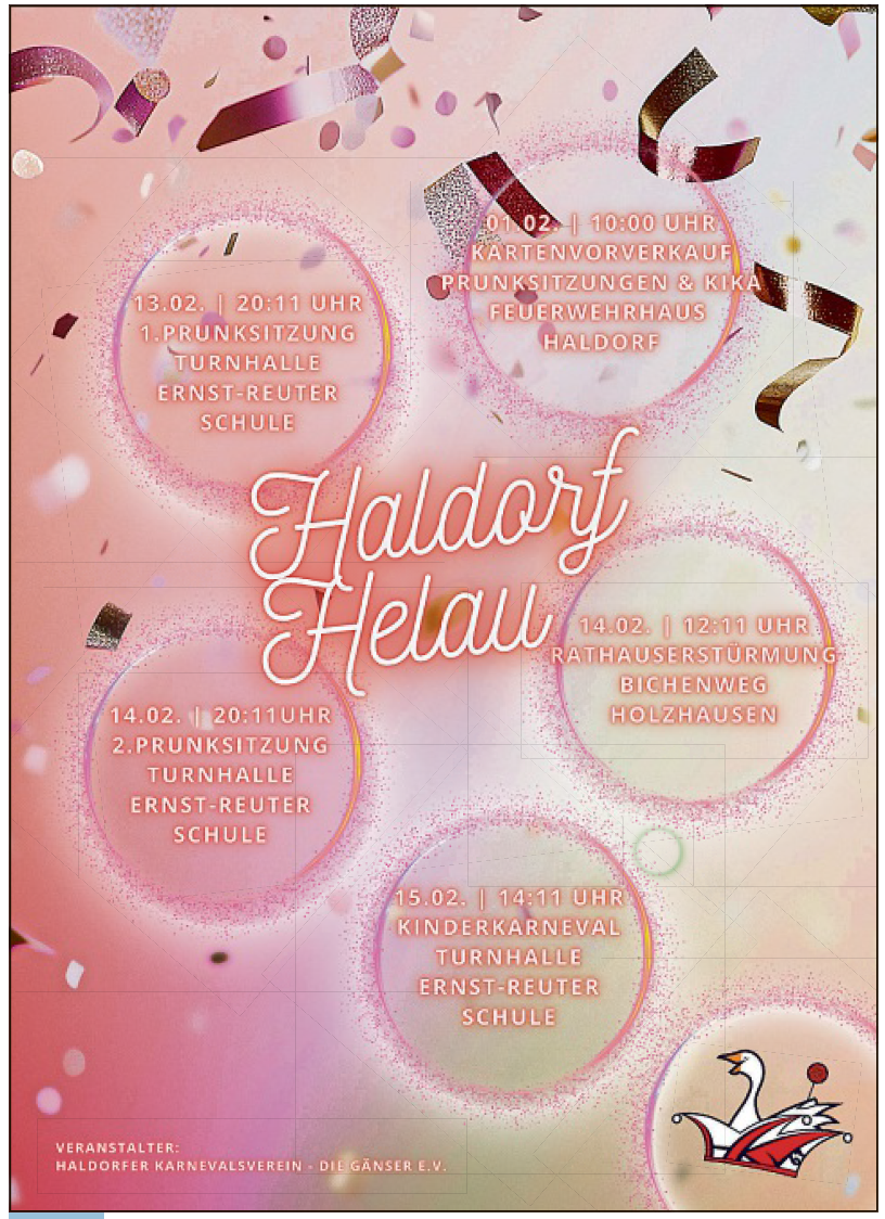 Liebe Haldorfer Narren, der Haldorfer Karneval wird 2026 zum ersten mal in