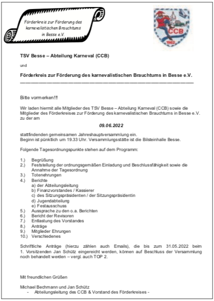 Einladung Jahreshauptversammlung 2022