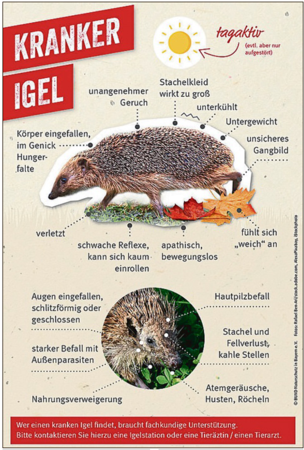 Merkmale kranker/ hilfsbedürftiger Igel Foto: BUND Naturschutz in Bayern e.V.